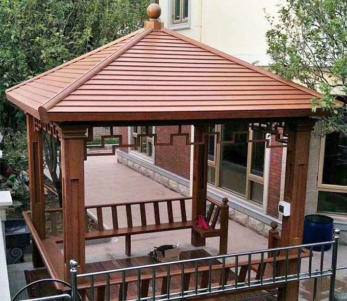 完美网页版页面-完美(中国)凉亭系列产品是采用高强度铝合金为原材料,经酸洗铬化,电泳或静电喷涂,木纹转印处理后,精密定制设计,保障安装。它具有防水防潮,不膨胀不变形,防腐蚀,具有逼真的木质感。成为别墅住宅及市政园林等建筑美丽的风景。